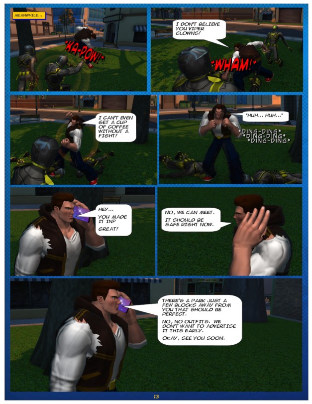 “While I’m proud of Galatea (Future) in all of her various incarnations, John Battle and his uncle, John Battlerock, are my signature heroes. I couldn’t show-off Battlerock X in the ‘City of Heroes’ before its official shutdown (in 2012), so when I created John Battle in the world of the Champions, it was with the plan that he would be included in this comic series.”