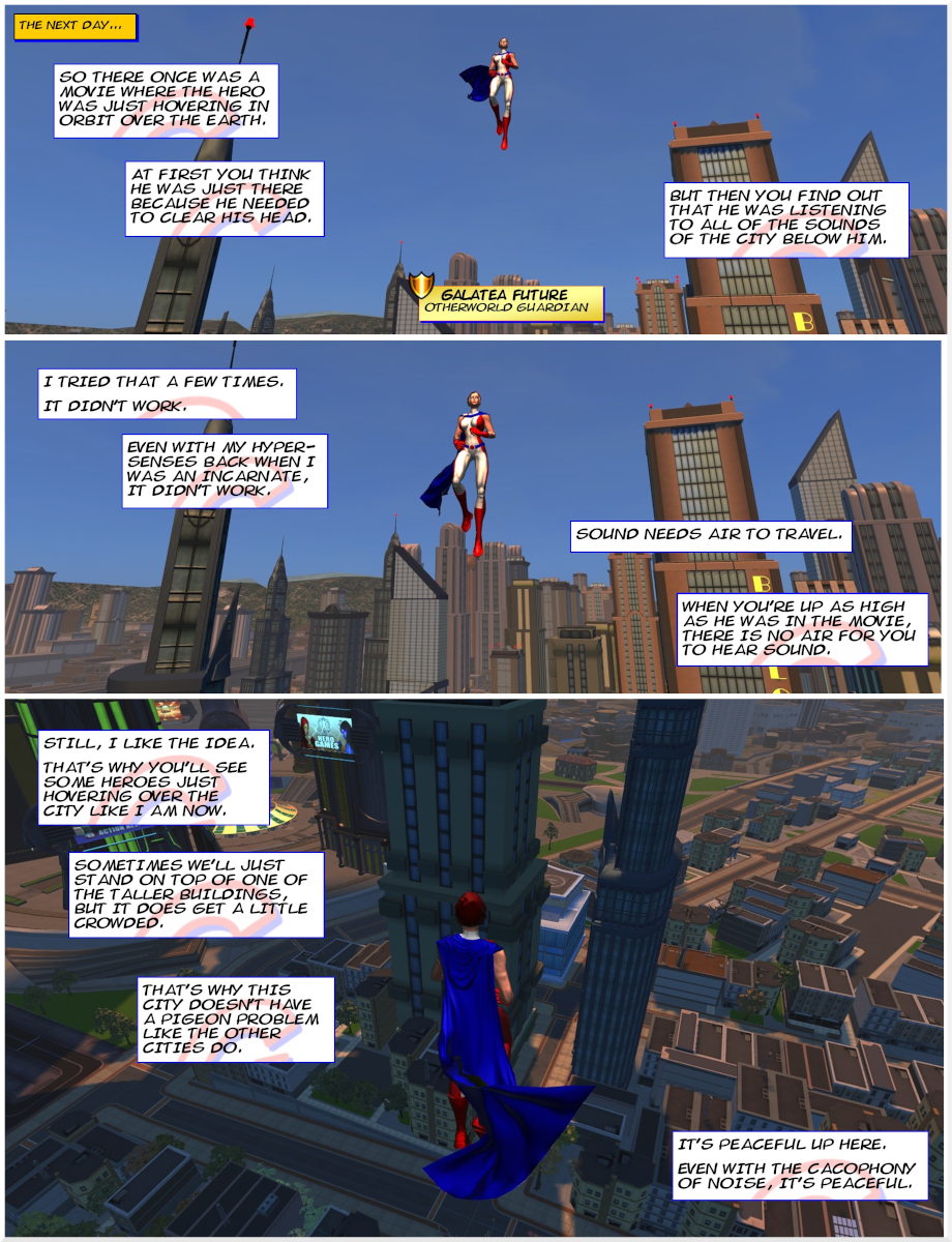 In case you didn’t get the reference, the movie Galatea that was referring to was the 2006 film “Superman Returns”, where one of the iconic scenes involved Brandon Routh’s title character listening to everything down below from orbit. While it was an eye-catching scene, it was physically impossible, as Galatea herself explained, even back when she was far more powerful your average tall-building-leaper.