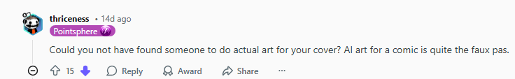 To which, I take exception to. It’s not a “faux pas”. AI is a tool. Yes, some publishers like DC have said they will not use it for their art or stories, and I have no problem with that. I used it to create a cover that stands out for the first issue of a comic series. They have the luxury of being able to pay artists and writers and to get paid for their releases.