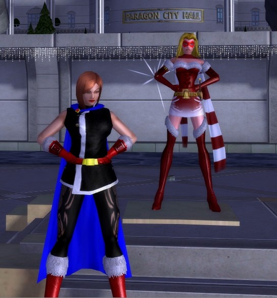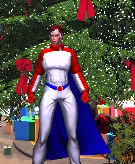 Galatea Future is spending the day standing guard over the Christmas Tree in the middle of the Renaissance Center. Black Harlequin has already tried to ruin Christmas for everyone when he sent his giant Misfit Toys to destroy the display. Thankfully the heroes were able to stop Black Harlequin, but he still managed to get away.