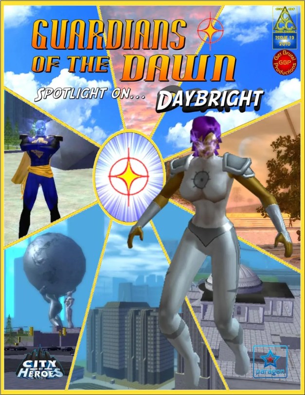 “Guardians of the Dawn Spotlight” is created using original characters in the City of Heroes Multiplayer Online Roleplaying Game. Copyright © 2004-2012. This story is an independent not-for-profit derivative work of the City of Heroes Game. All original rights are reserved by NCSoft and Paragon Studios. NCSoft, the interlocking NC logo, Paragon Studios, City of Heroes, City of Villains, and all associated logos and designs are trademarks or registered trademarks of NCSoft Corporation and Paragon Studios. Cryptic Studios is a trademark of Cryptic Studios, Inc. All other trademarks are property of their respective owners.