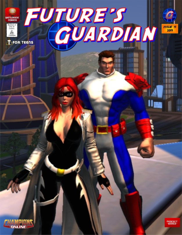 One of the downsides of dealing with Champions Online – and thus getting material for comics – is the limited amount of props the developers provided for characters. They do great designs, wonderful and dynamic cityscapes, detailed costume pieces… but they suck in terms of providing props for the characters to use. You probably saw the dig in “Future’s Guardian” #15 where Starlett asks why John Battle doesn’t have a coffee machine in his loft. That’s because the designers forgot to come up with one.